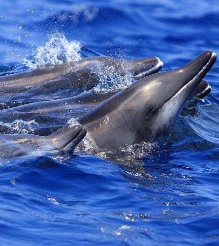 Los delfines (Delphinidae), también delfines oceánicos para distinguirlos de los platanistoideos o delfines de río, son mamíferos de una familia de cetáceos odontocetos muy heterogénea, que comprende 37 especies actuales. Miden entre 2 y 8 metros de largo, con el cuerpo fusiforme y la cabeza de gran tamaño, el hocico alargado y solo un espiráculo en la parte superior de la cabeza (orificio respiratorio que muchos animales marinos tienen como contacto del aire o agua con su sistema respiratorio interno). Son carnívoros estrictos. Están entre las especies más inteligentes que habitan en el planeta. Se encuentran relativamente cerca de las costas y a menudo interactúan con el ser humano. Como otros cetáceos, los delfines utilizan los sonidos, la danza y el salto para comunicarse, orientarse y alcanzar sus presas; además utilizan la ecolocalización. Hoy en día, las principales amenazas a las que están expuestos son de naturaleza antrópica.
